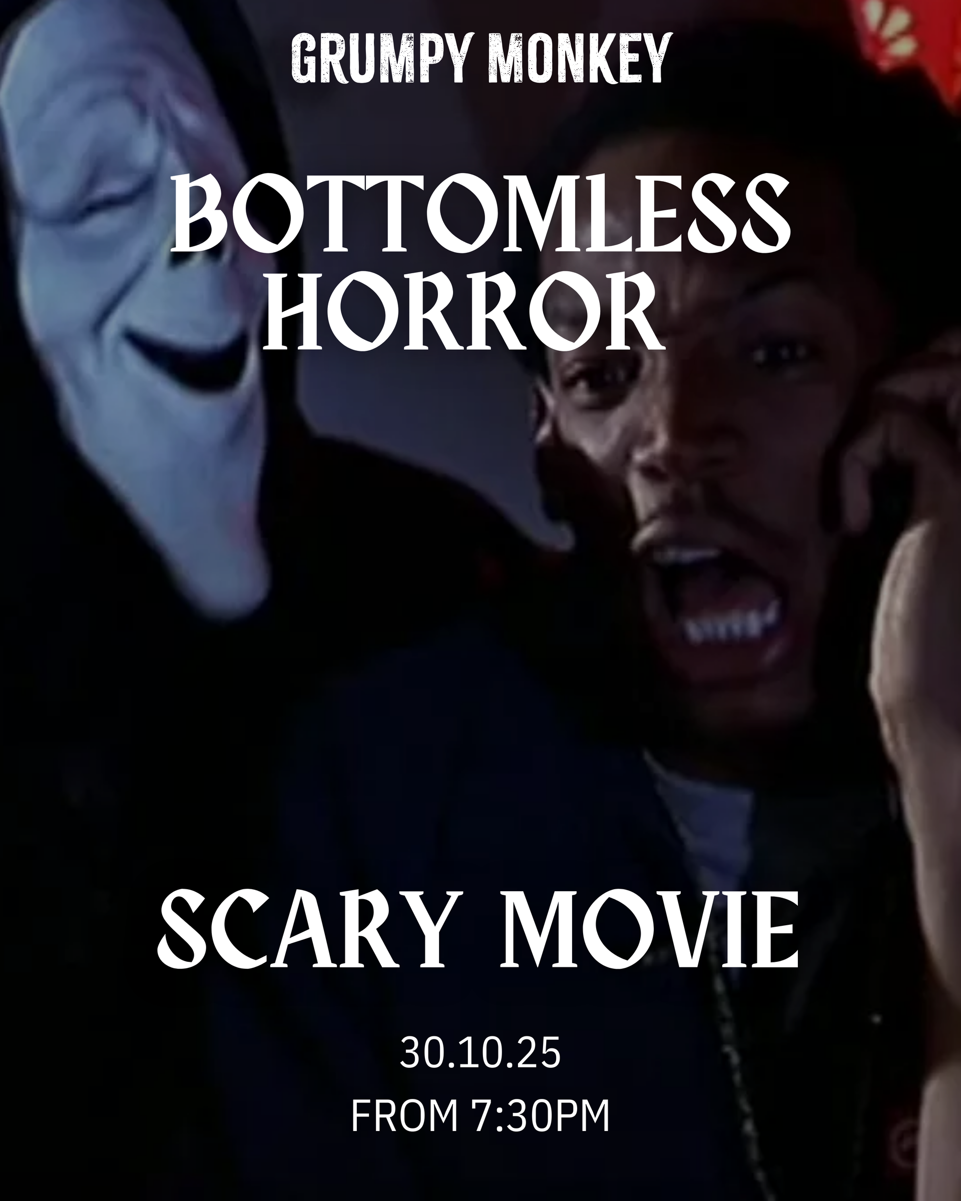 Watch Scary Movie (2000) on the 30th of October at Grumpy Monkey, enjoy our bottomless brunch (£35 per person) and popcorn for each booking